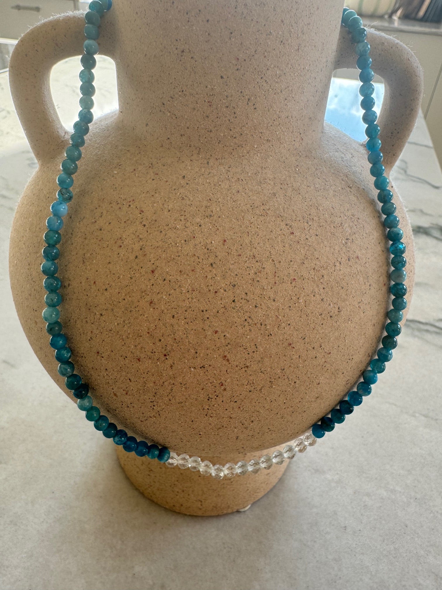 Indulge in the radiant beauty of this exceptional Clear Topaz and Apatite necklace and let it guide your journey toward clarity, abundance, and success.