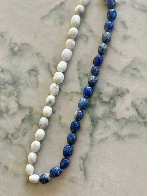 - Natural Lapis Lazuli and White Tourmaline gemstones ethically sourced
